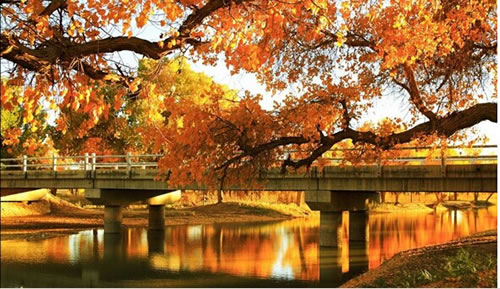 曾有人说过:如果你爱一个人,就带他去看额济纳的秋天,因为那是天堂;如果你恨一个人,就带他去看额济纳的春天,因为那是地狱;没有人能够想到这里竟然是我国沙尘暴的发源地,有时天堂与地狱之间仅仅只是一步之遥;每年额济纳都有一个黄金季节,仅仅十天时间,这份美丽就离我们而去,下次的邂逅又需要一整年……