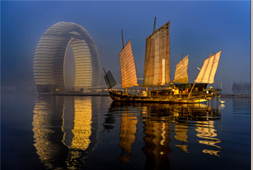 9:00参观太湖度假区渔人码头和月亮广场,坐太湖游船游览浩瀚太湖,近观白金五星酒店---月亮酒店的雄伟。